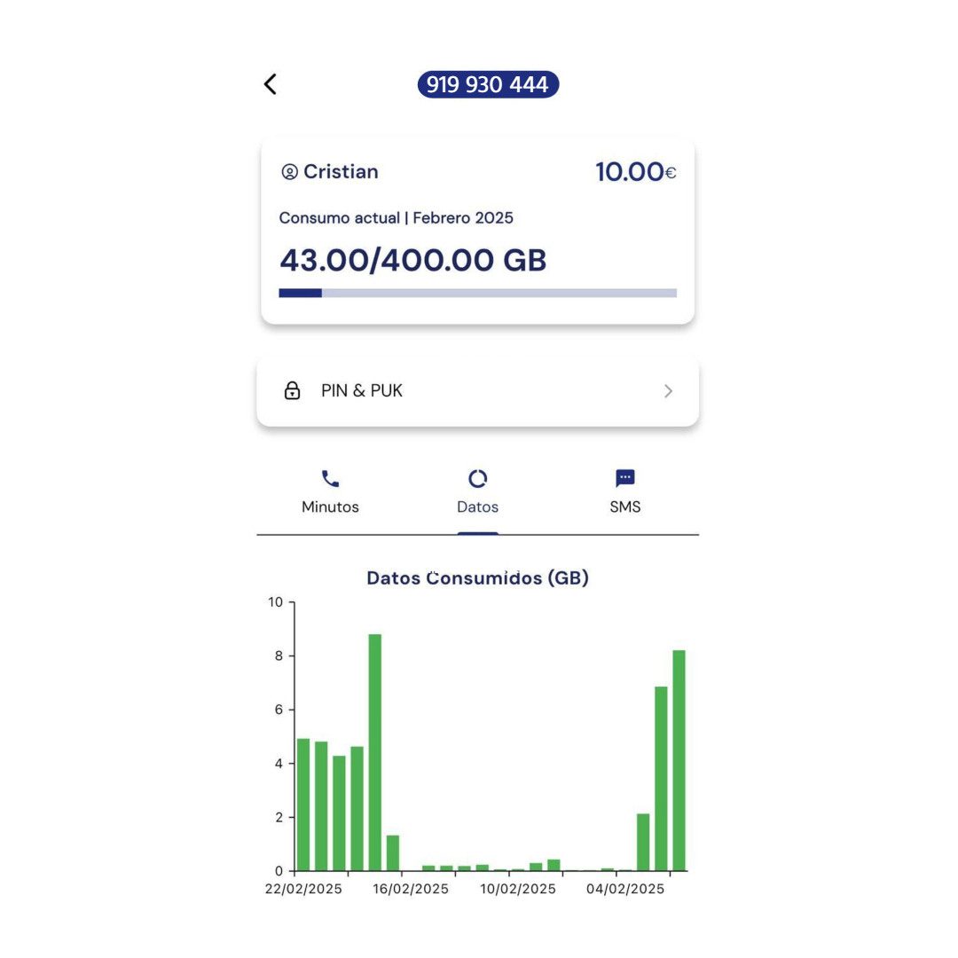 Recuerda que desde la app de GYGA únicamente verás el detalle de las llamadas realizadas y los GB consumidos. Para consultar tus pedidos, suscripciones o facturas debes entrar en tu Área de Cliente desde la web. Ten en cuenta que en tu factura no aparecerá el detalle de tus llamadas.